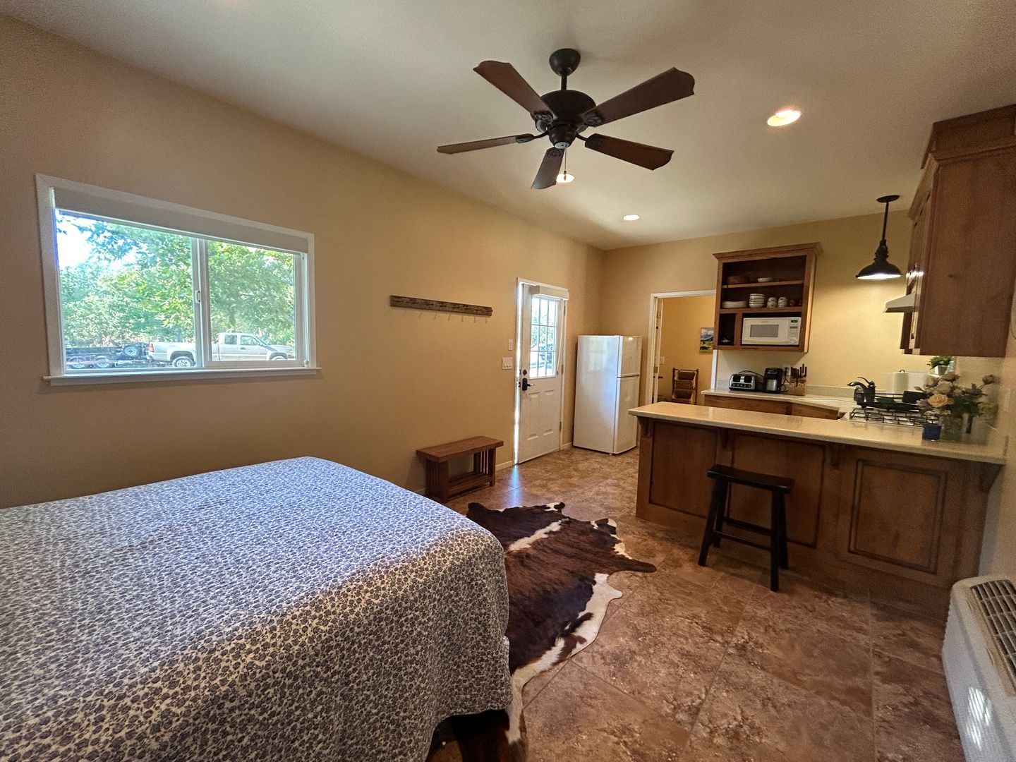 This furnished studio is located at a Red Bluff estate and is perfect for someone that works in the area and needs a home away from home. The studio is fully furnished and includes all utilities. There are multiple homes on the property, but situated in a very serene settting. The unit is very small, pets not considered and smoking is not allowed on the property. The owner will consider a month to month or longer term lease.