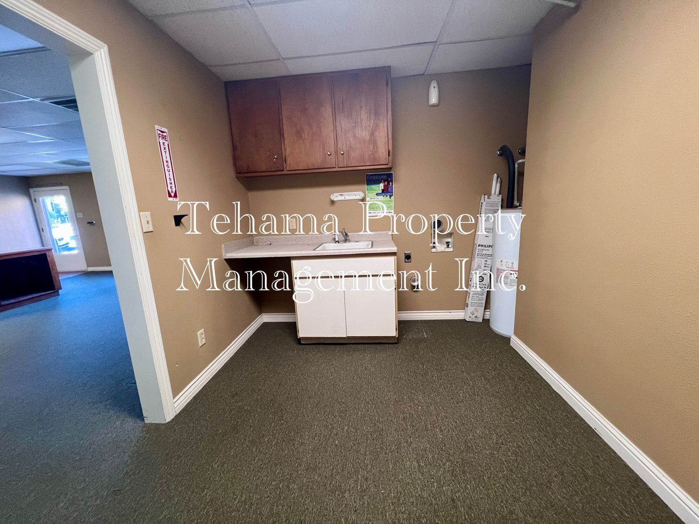 Commercial Building for Rent. This building offers an open floor plan with a large front room area great for display shelfs or office desks, a front desk counter w/shelving, a kitchenette & 1 private office. Kitchenette also has washer/dryer hookups. Tenant pays all utilities.